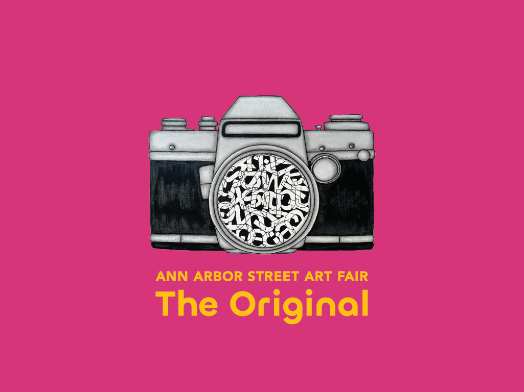 Artwork pulled from the iconic 2025 Featured Artists Andy Adams' commemorative poster, this shirt is a tribute to the 66th annual Ann Arbor Street Art Fair, The Original!