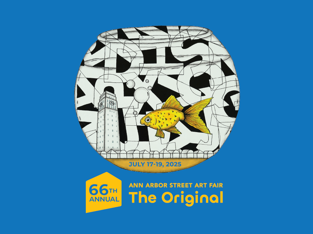 Artwork pulled from the iconic 2025 Featured Artists Andy Adams' commemorative poster, this shirt is a tribute to the 66th annual Ann Arbor Street Art Fair, The Original!
